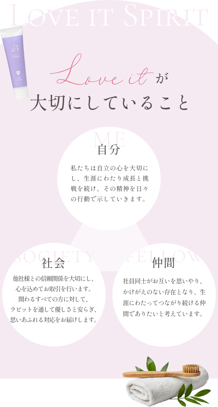 私たちは、オーラルケアを通じてお客様に安らぎをお届けすること。